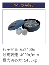 NO2 | 水平轉(zhuǎn)子 | 6×2400ml | 4000r/min | 5400xg |